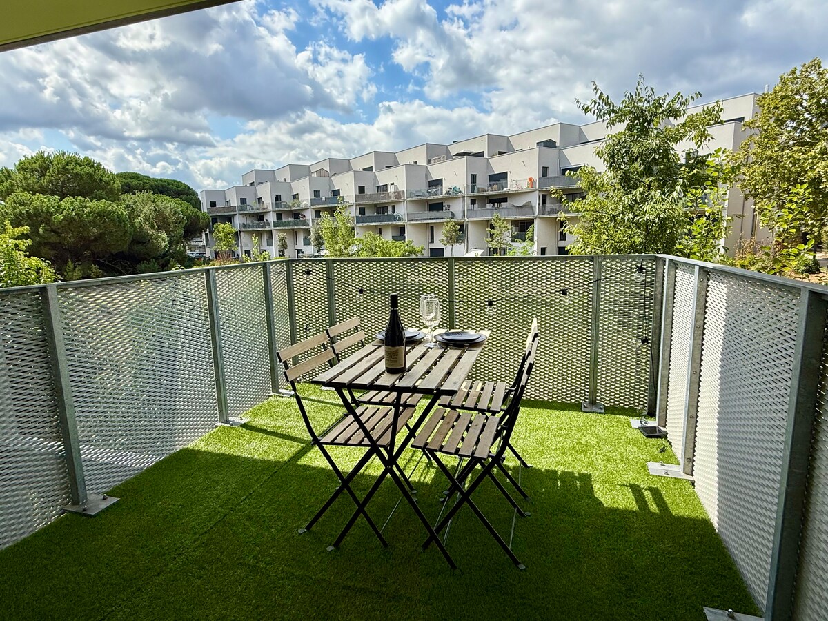 Come and stay in this cute 38 m2 2-room apartment in Mérignac! Its highlights? - A 12 m2 terrace with a relaxation area and a dining table. - Its pretty little fully-equipped kitchen with dishwasher. - A bathroom with a washing machine. - Its proximity to Bordeaux, 14 minutes from Place Gambetta by bus. - A private parking space. - Linens provided (towels, bed sheets). - No cleaning fee: In return, the accommodation must be left clean and tidy