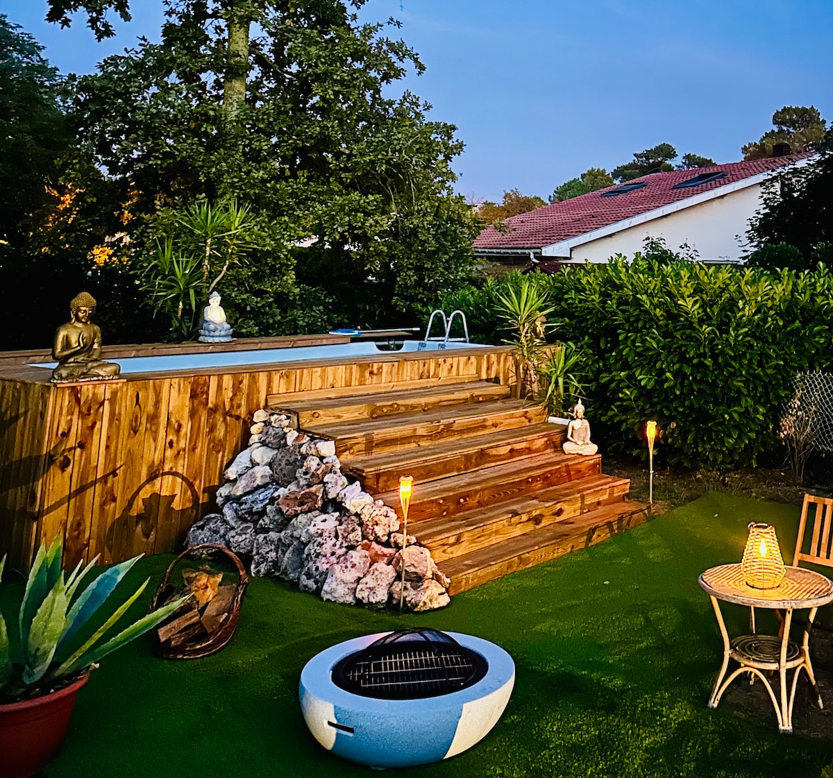 Our Arcachon Bay-inspired cabin built in 2022, is ideally located. 20 minutes from the airport, 11km from Bordeaux (bus 50m then tram), it is nestled in the heart of the Bordeaux vineyards, 45 minutes from the ocean beaches and the Pilat Dune. You will be surprised by the beauty of the mosaics blending into a Bohemian Chic decor. The French High-Fidelity equipment makes this cabine a real auditorium where the Full-HD video projection offers immersion in concert mode.