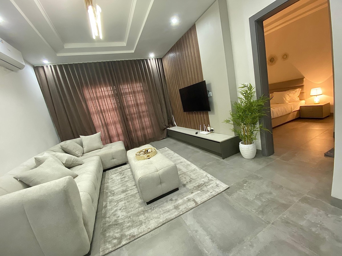 Bienvenue dans notre luxueux appartement tout neuf, situé en face de l’arrêt du Bus Rapid Transfer ( BRT ) de liberté 6, pensé pour offrir une ambiance cosy et apaisante. De la baignoire hydromassante, à la cheminée électrique en passant par les enceintes du plafond, tout est choisi avec attention . Le logement a également un joli patio privé pour savourer un café le matin, un verre en fin de journée Notre appartement vous offre tout le confort nécessaire pour un séjour inoubliable