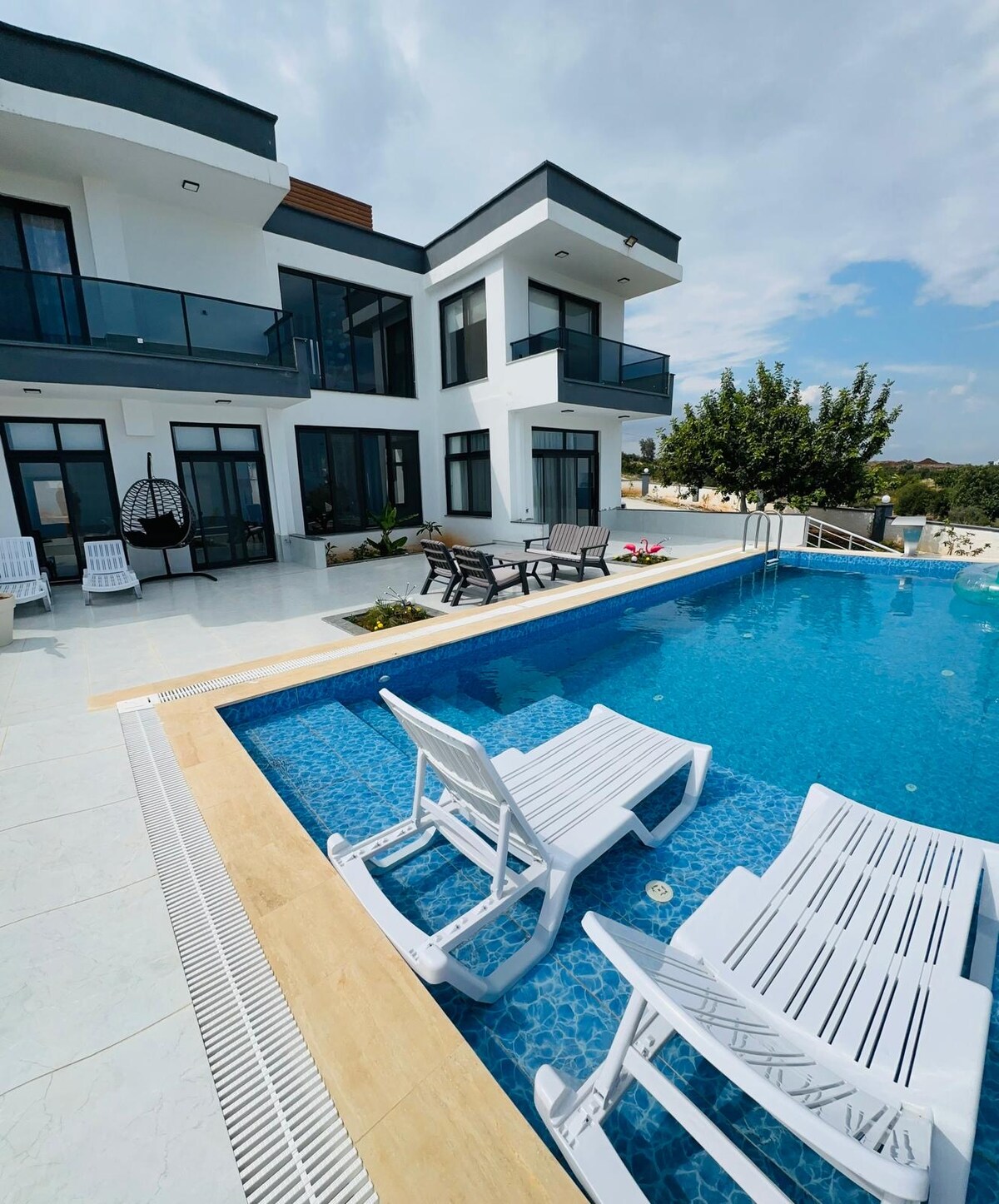 Our luxury villa, located in the Silifke-Taşucu Kum Neighborhood, awaits you, our esteemed guests, for an unforgettable vacation experience away from the public eye. Our villa is 500 m away from the sea and 100 m away from chain markets. It has spacious areas of use above the standards, a swimming pool designed with attention to privacy, a large patio and 5 bedrooms, 4 of which are suites. Our villa is preferred by crowded family groups due to its central location and luxurious living spaces.