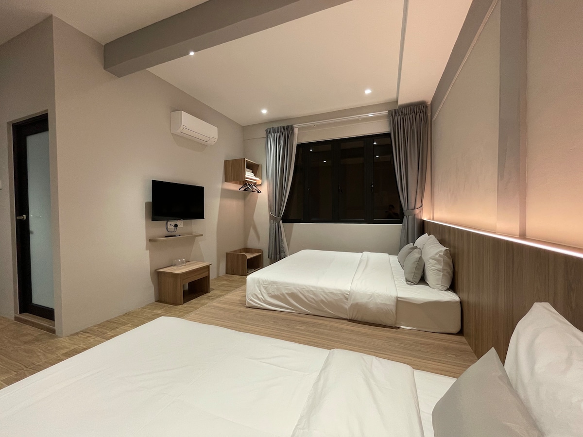 Room with 2 Queen beds and private bathroom. Suitable for family and friend to enjoy beach and crystal clear beach snokerling. This package inclide breakfast.