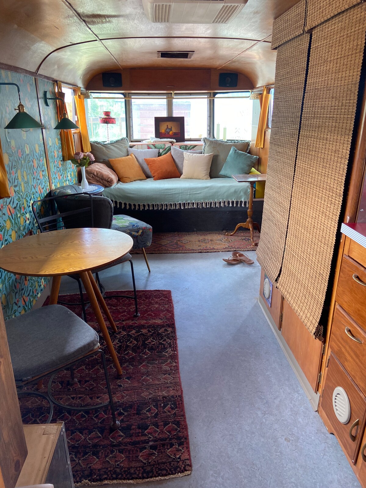 Every Monday, May 5–Sept 29, enjoy live music, food, and bar from 5–9pm! Bus with a View – Glamping with an epic mountain view • Twin trundle (2 single beds) • 74" ceiling height • Wood stove & electric fireplace • A/C unit, mini fridge, tea bar • Limited electricity • Fancy porta-potties • Rustic kitchen w/ propane grill • Private fire pit • Sunroom: Wi-Fi, workspace, coffee, drinking water, and local goods Experience the dark skies—an unforgettable stay awaits!