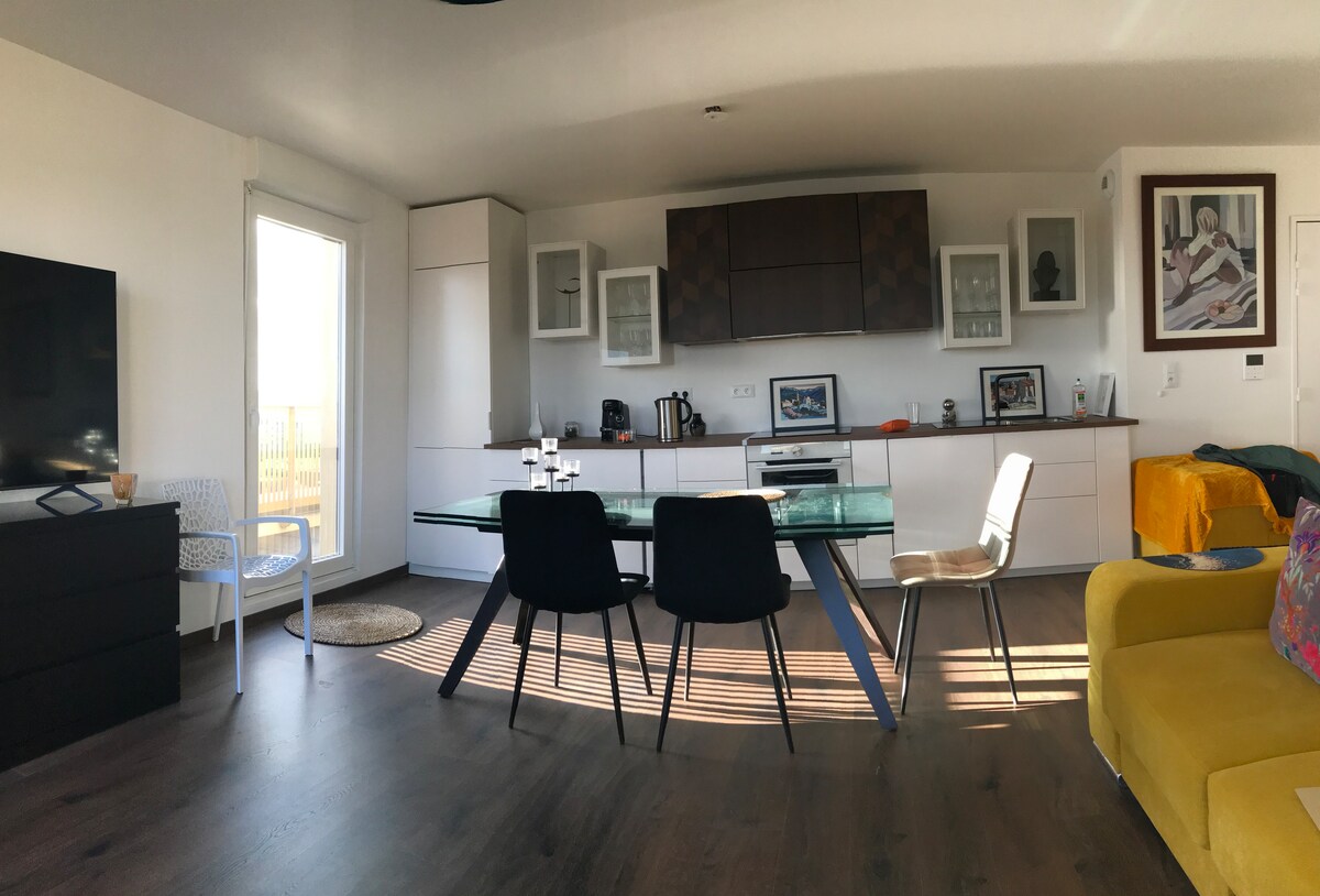 80 m2 apartment located in a small condominium of 9 apartments. - 1 bedroom with quality bedding for two people. - 1 bathroom with shower and Bluetooth-connected mirror. - 1 equipped kitchen. - 1 private parking space. - 1 terrace overlooking a beautifully wooded park - Smoking is preferable on the terrace. - You may not exceed the number of people specified at the time of booking. High-speed fiber internet connection.