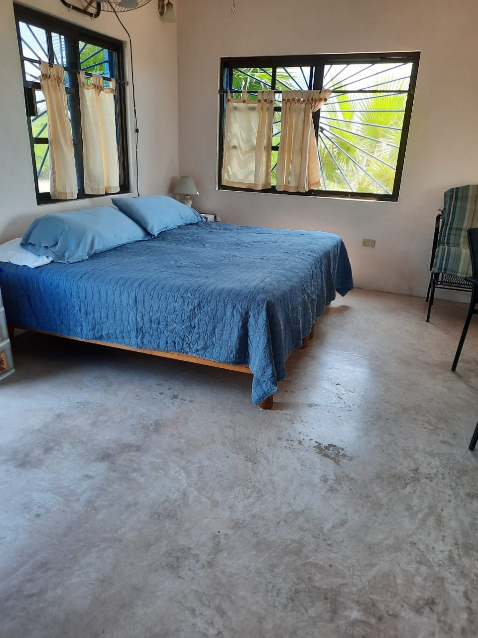 Off-the-grid, solar powered small studio with thatched roof has Starlink internet, a queen size bed, kitchenette, bathroom, hammock and a palapa shaded patio. Free parking is 2 small blocks away from the house. Beach chairs, umbrella, towels and cool box are provided. Dive shops, swimming beach and restaurants are located within 5 minutes walking distance. The Surf Hut and Pelican Palace are located on the same lot but have independent access. Unit not set up for children under 10 years old.