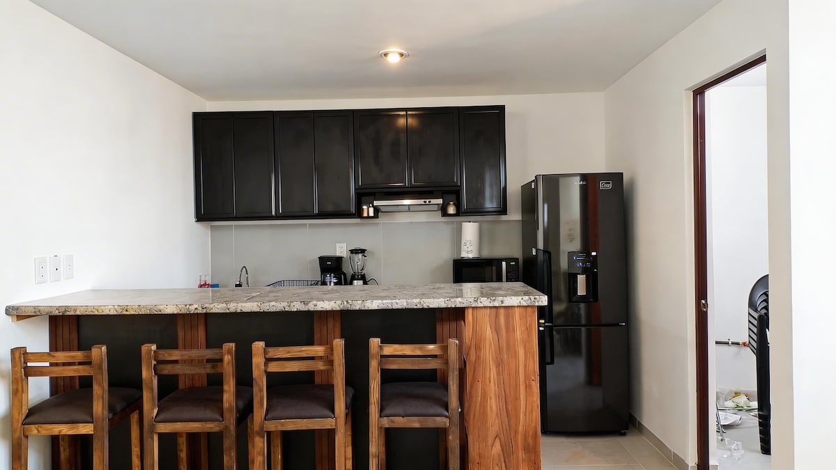 Depa de Mara by Casa de Mara & Donna, Ground floor apartment for 1-2 people, has a queen bed for two people! It has a fully equipped kitchen, living room, full bathroom, backyard with Jacuzzi, garage with electric gate! The location of the Mara Apartment is very privileged as it is right in front of the Lastras Stadium, less than a minute's access to Av. Industrias and just as close to the access to Blv. Río Españita, less than 5 minutes from Plaza Soriana el Paseo, 5 minutes from downtown