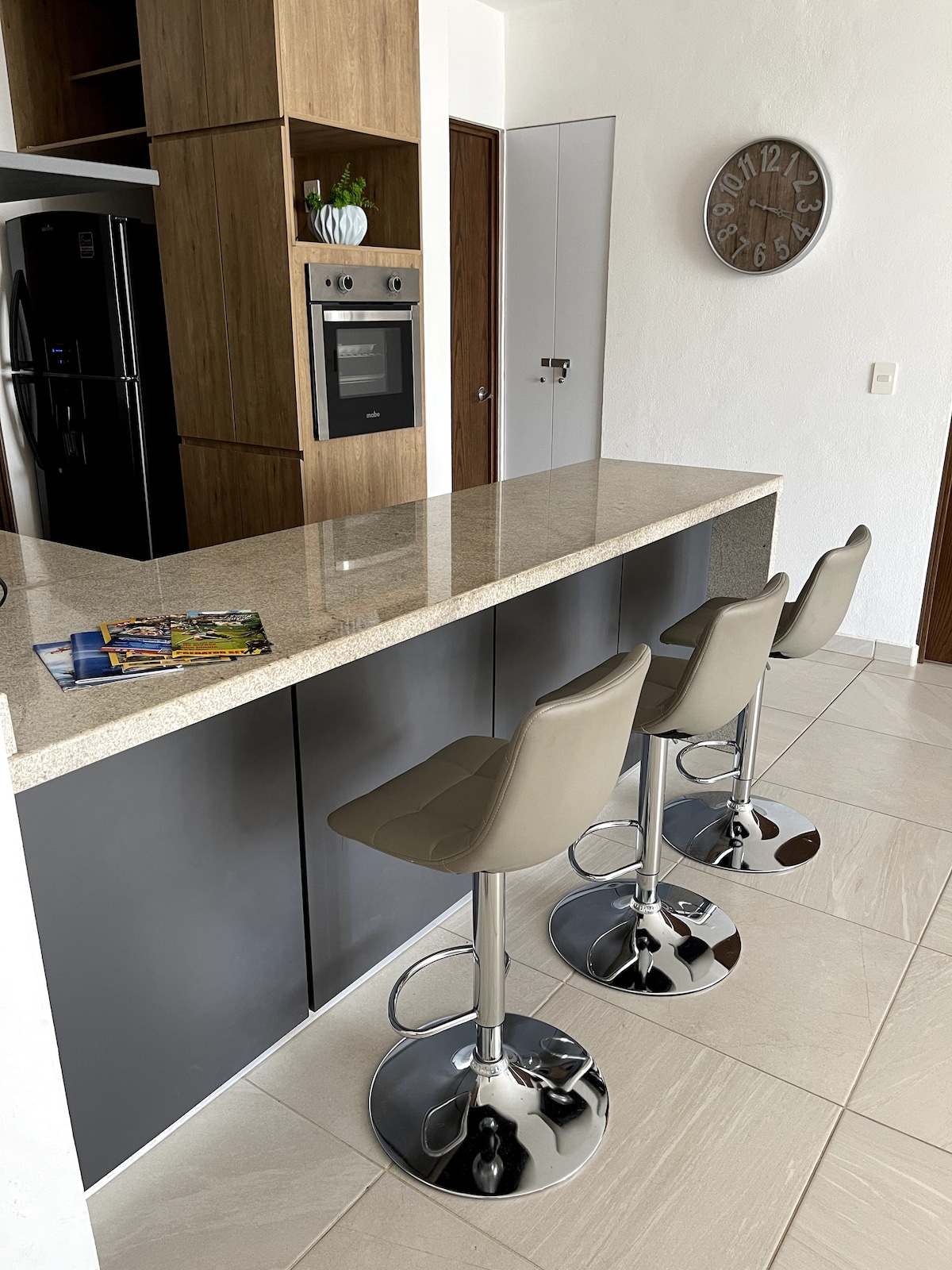 Condo Rosina is a freshly updated 1-bedroom condo on the 4th floor of 3.14 Living in Nuevo Vallarta repainted in June 2025. Enjoy mountain views and a cozy balcony with BBQ and sunrise view. Sleeps 2 with a king bed, 1 bathroom with shower, fully equipped kitchen, coffee station, high-speed internet, great new A/C, and a dedicated workspace. Spacious living area with large couch. Walk to the beach in 8 minutes or enjoy cafés, restaurants, and shops just downstairs. Peaceful and well located.