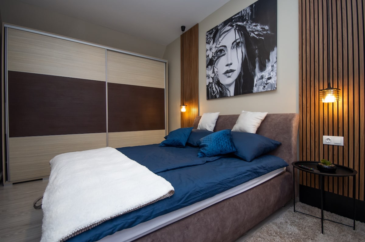 The apartment is located in ARED complex, in a great area, only 2 minutes from AFI Mall, Atrium Mall, McDonald, restaurants, terraces or parks. The apartment features a spacious living room with sofa bed, a fully equipped kitchen, a bedroom with king size bed, a big bathroom and a balcony with view. The place is designed with the idea of providing a comfortable space for couples, families, solo or business travelers who are looking for a memorable stay in Arad. Free private parking for guests