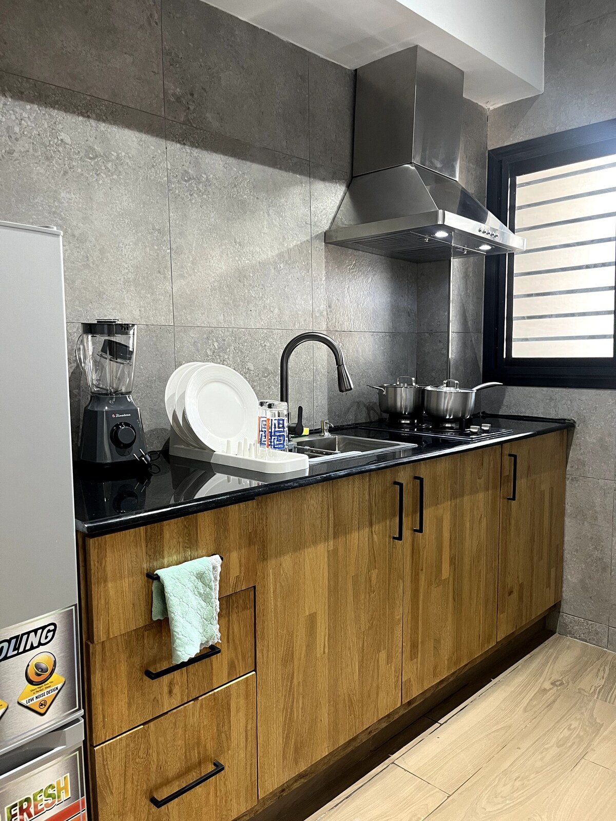 Bring the whole family or large groups to this great place with lots of room for fun. This serviced apartment is tastefully furnished. During your stay, you will have free access to the apartment high speed WiFi (Optical fiber), the crystal clear swimming pool, the fully equipped gym, and to a vast parking for your car. On-site security is 24/7 (Guards+CCTV). The city center is a few kilometers away. Restaurants, supermarkets, ATM, clinics, and pharmacies are available and easily accessible.