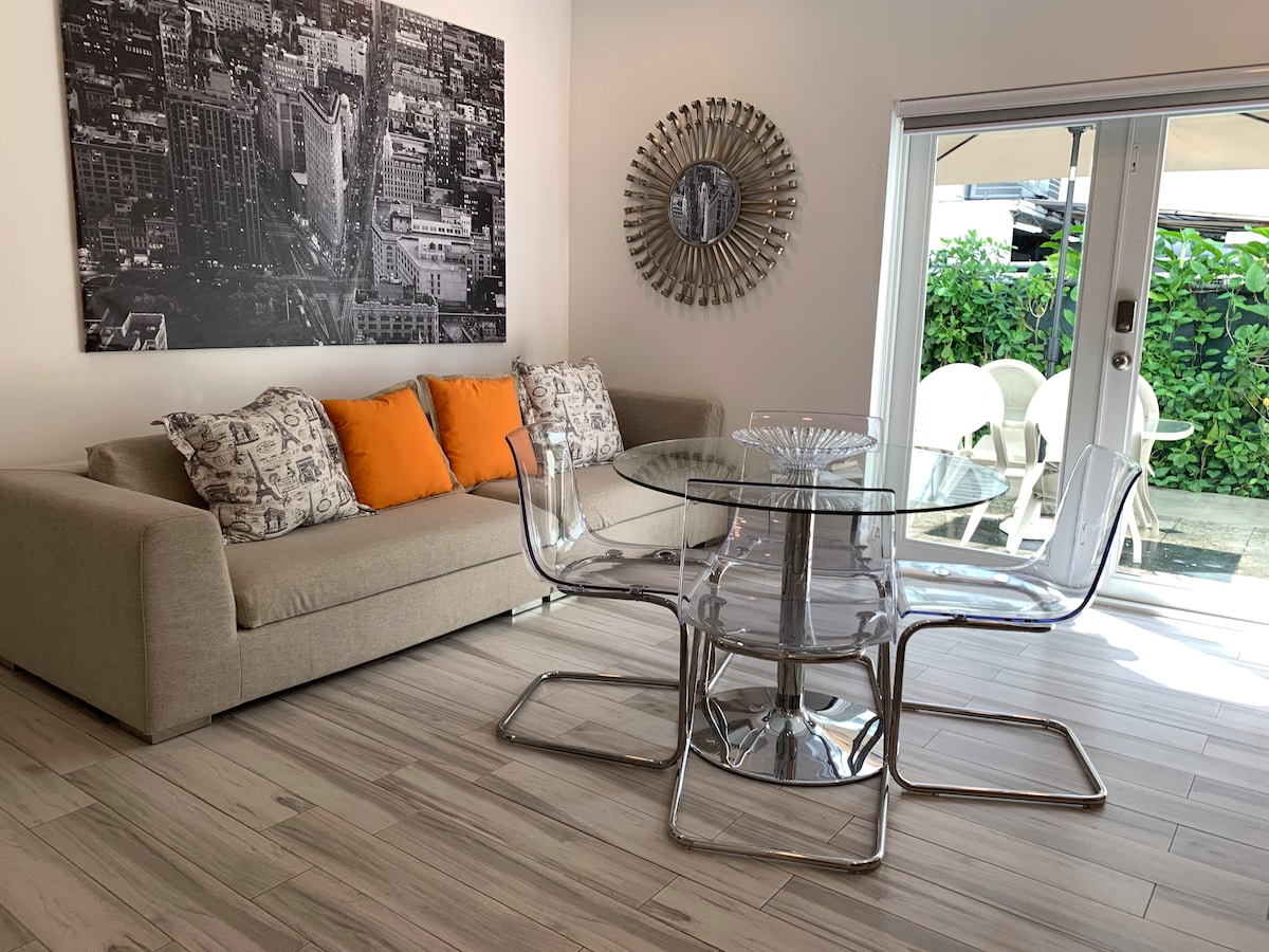 Take a break from the fast life and rejuvenate in these adorable One-bedroom apartment suites right on Miami Beach in our BEACHFRONT property. Stay fresh all week long in our 2 Pools and Hot tub. At these furnished apartments, you can enjoy the sunset from the balcony and listen to the rhythm of the ocean. All the apartments have Laundry inside. The stainless steel appliances and ultra-modern kitchen and bathroom will not disappoint you.