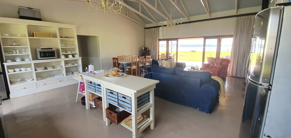 Escape the city in this spacious 4-bedroom farmhouse, located in a secure estate with free-roaming game. Perfectly positioned just 50 meters from the river, this home offers breathtaking views and unforgettable sunsets. For boating and fishing enthusiasts, the property includes a private jetty right in front of the house. Additionally, a communal slipway is just 150 meters away, making it easy to launch boats and water toys. Features: 4 Bedrooms Private jetty Communal slipway nearby (150m)