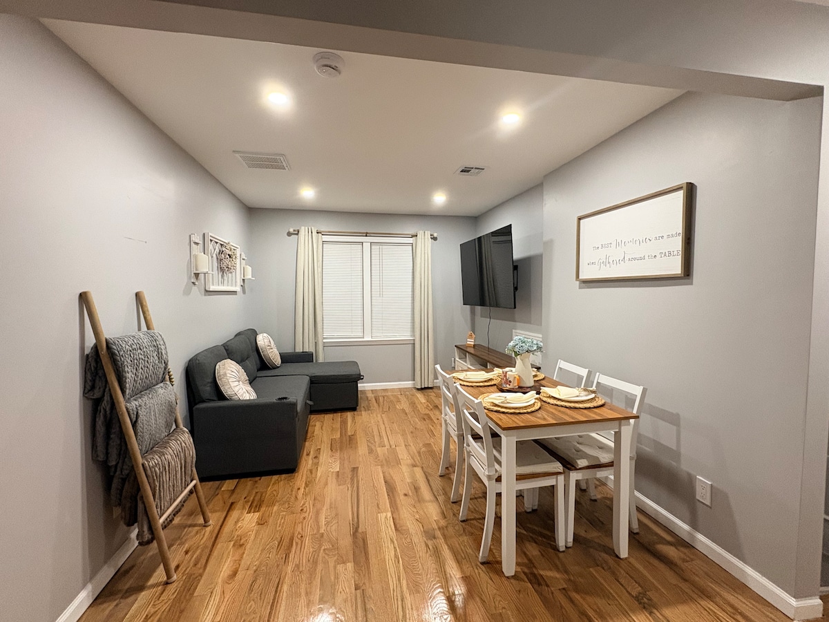 This unique place has a style of its own. Very clean and private. Its modern look will make you love it. Your will be close to everything when you stay at this centrally-located place. It’s a major train station 13mins away that takes you to Newark Airport, Newark Penn Station, NYC & more Romantic setups available at an additional charge. Romantic setups do not come with booking Kids friendly. There are kids in the other unit you may hear sometimes. Cameras located outside at front entrance