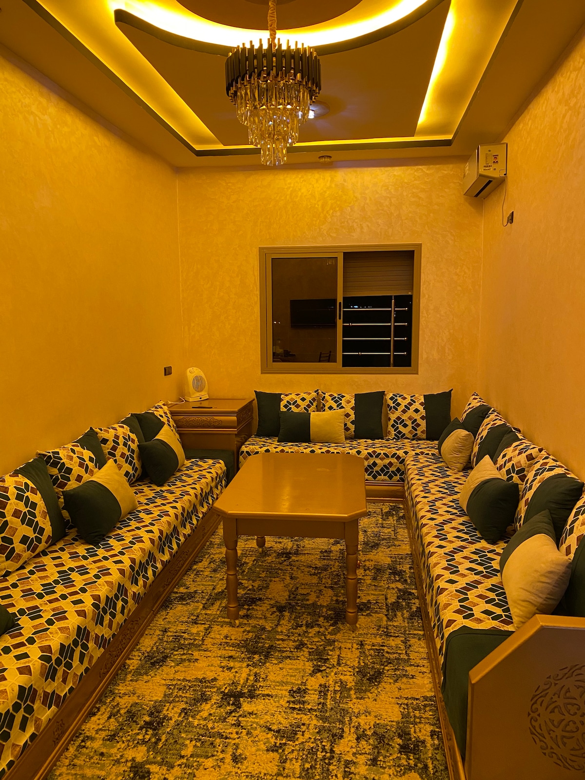 Welcome to this beautiful 130 m² apartment in the heart of Errachidia! Spacious and bright, it offers 2 double bedrooms, 1 single bedroom with desk, 2 bathrooms, a dining room and a chill and cozy living room. Short walk to bus station, souk and shops. Enjoy free transportation from the airport 🚗✈️ Comfort and location ideal for families, friends or business travelers.
