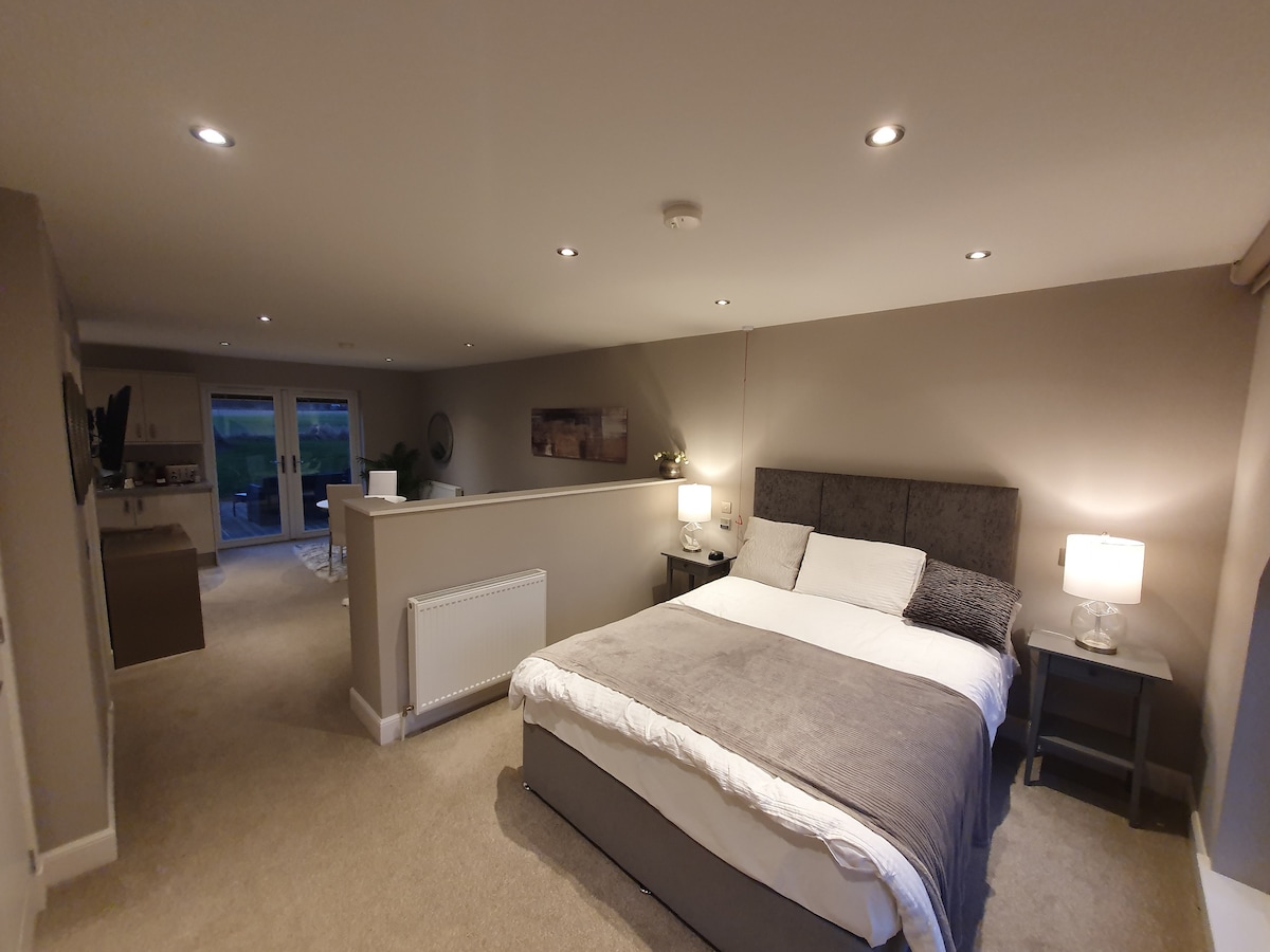Take it easy at this unique and tranquil getaway. Located just 5 minutes from the airport, the guesthouse is superbly located for both business and leisure purposes. The self-contained studio apartment has views on the green fields, with nice walks close by. A decking area with outdoor furniture is great for breathing in the fresh air. Wifi and Smart TV are available, as well as a washing machine, and a kitchen with a hob and microwave.