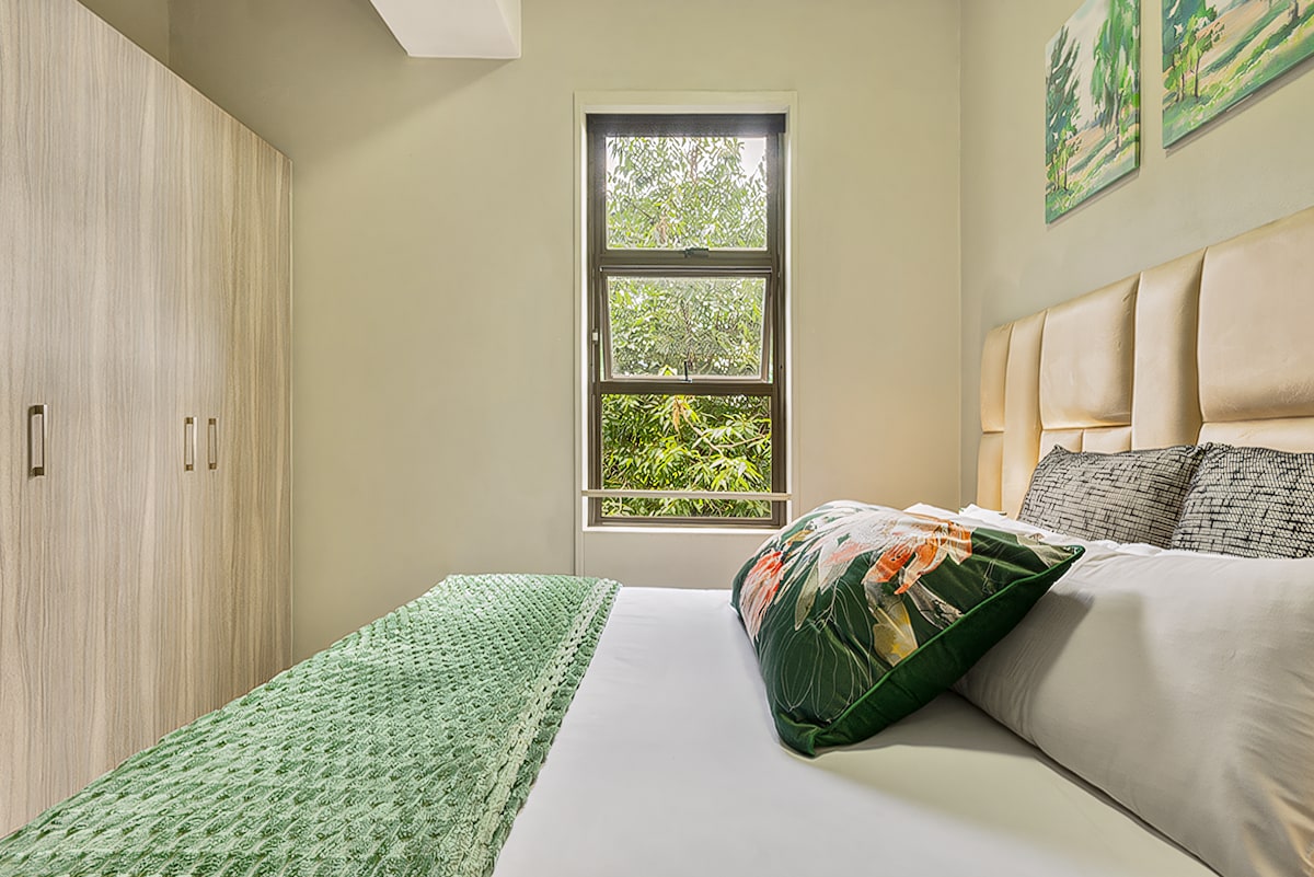 Make yourself at home in this calm, stylish Rosebank loft with high ceilings, abundant natural light, and open-plan living. Ideal for leisure or work— office spaces, and a backup generator ensures no loadshedding. Enjoy Free Fibre Wi-Fi, 24/7 security, and secure parking. Centrally located – it’s your perfect home base to immerse in Rosebank’s vibrance. Just a 3-minute walk to Gautrain Station or Rosebank Mall, and 10 mins drive to Sandton. We usually reply to messages in an hour (office hrs)