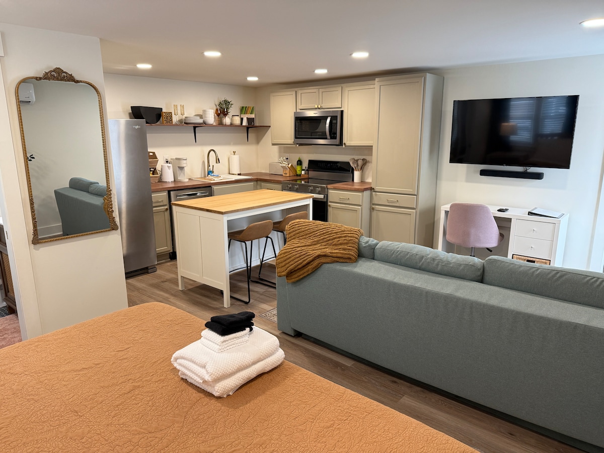 Safe Modern Studio Apartment | King Bed • Kitchen