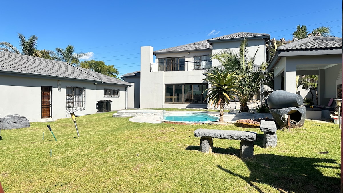 Self catering,Spacious, Secure 4BR Family Retreat with Pool, Gym, Cinema Room & Prime Location Near Top Attractions fully equipped 4-bedroom home is perfect for families, groups, or business travelers looking for comfort, privacy, and plenty of on-site entertainment. 4 bedroom including two en-suite bedrooms for added comfort and privacy, and two additional double rooms making it perfect for up to 9 guests. clean, cozy, furnished with ample storage space and quality linen