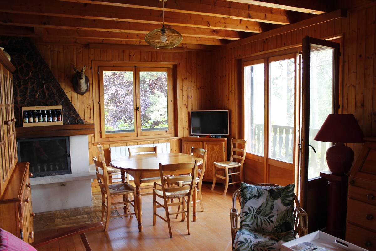 Small charming chalet, ideal for a holiday as a couple, with family or friends. No WiFi but scrabble and raclette! TV without channels but DVD available 15 min walk to Mercantine beach. A balcony overlooking the forest and lake views, possibility of barbecues, Pretty bathroom with walk-in shower. Fireplace (wood at the supermarket) - Furnished kitchen 1 bedroom with a 140x200 bed (open to the living room but separated by furniture) 2 beds 90x200 in the living room