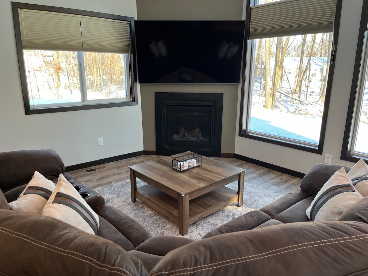 Escape to your next getaway just under two hours from the Twin Cities! Our modern cabin offers a serene escape with all the comforts of home and the charm of European architecture. Nestled in a tranquil neighborhood on Mille Lacs Lake, this spacious retreat boasts high ceilings and a sophisticated German-inspired design, perfect for families or groups of up to 9 people. -Boat launch 1 block away -Grocery store, pharmacy, shops, and restaurants within 10-minute drive -Fast WiFi for WFH