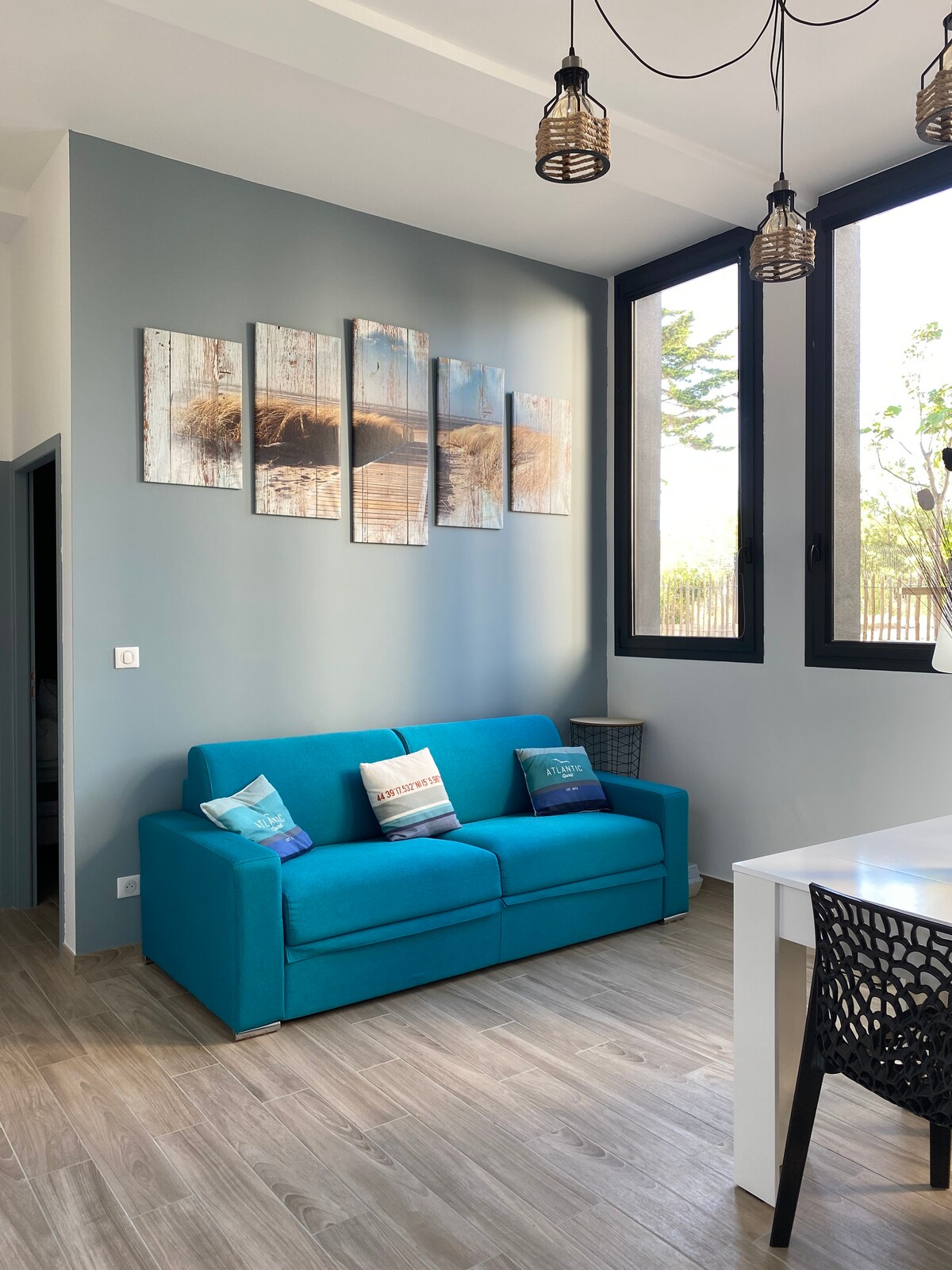 Moliets... The silver coast, the murmur of the wind in the pines, the scent of the ocean whose waves sparkle in the sun. Located 44 km from Biarritz, 125 km from Bordeaux and one click away from booking from home. For 2, 3, 4, 5, or 6 people, come and relax in this apartment located between land and sea, at the top of the pine trees of the golf course... Here you will sleep in REAL comfortable beds. Numerous activities are available to you so that the photo album of your vacation remains unforgettable.