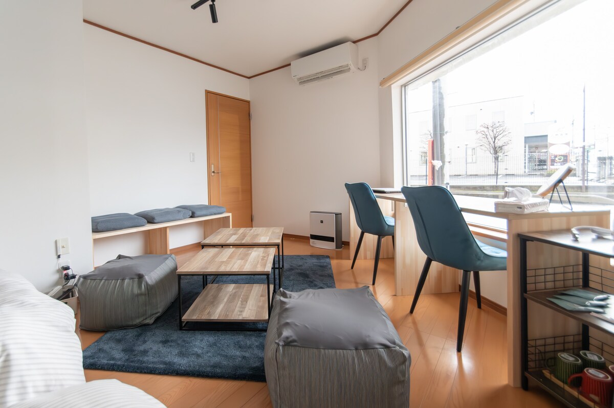 Enjoy a newly renovated 1st floor space with the charm of Japanese decorations and the comfort of modern appliances. Just a 15-minute walk to the ski slopes or hop on the free shuttle just a few minutes walk away! Quiet area perfect for families, but also walking distance from all the action of bars, restaurants, and public hot springs. Relax in new, cozy beds after a day on the mountains. Perfect for those seeking both tradition and modern comfort, all in a clean, welcoming space.