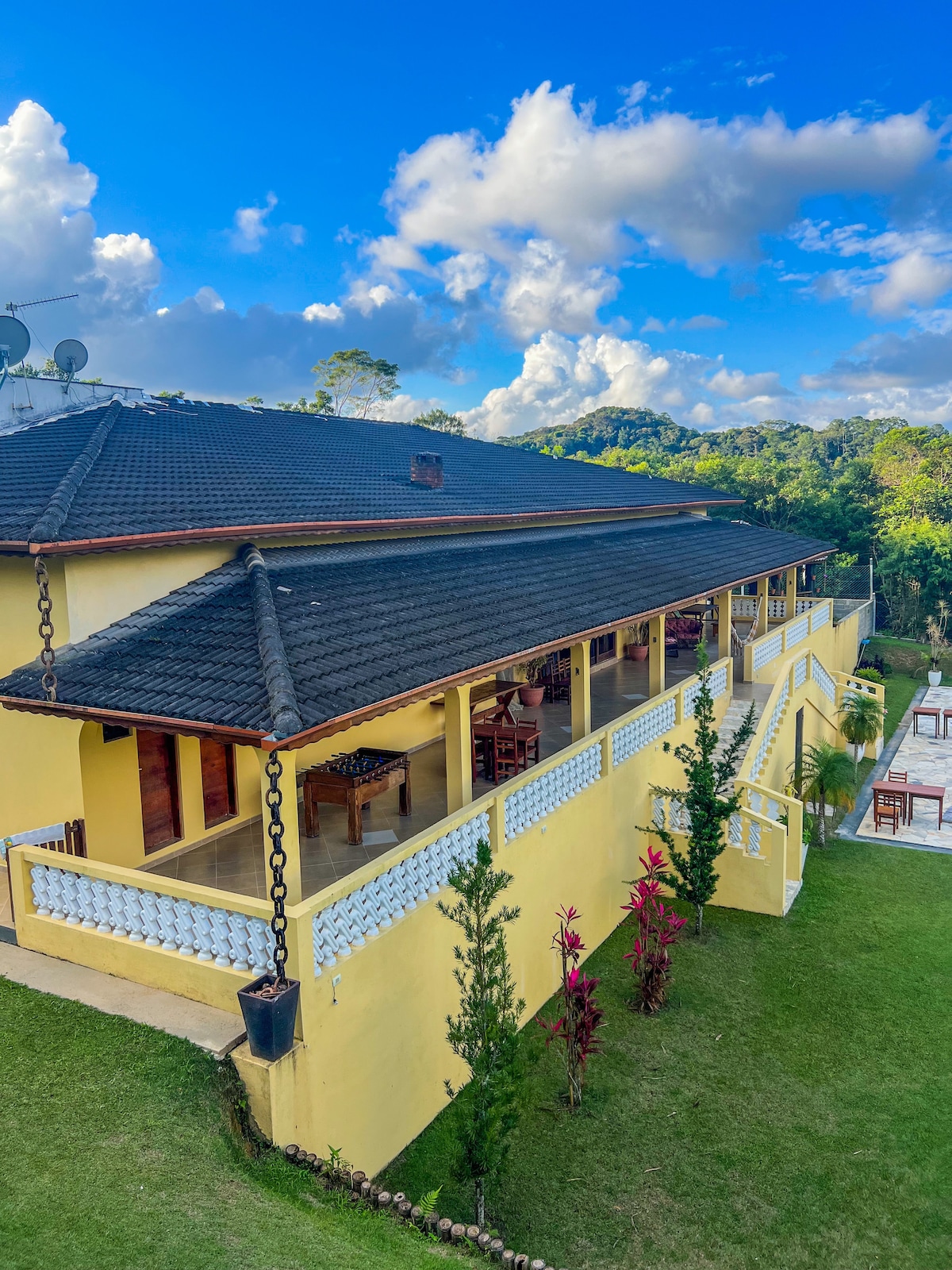 Aproveite os 2.600m² de muito lazer, chácara com rio de águas cristalinas no próprio terreno e há 20 min de Peruíbe (Praia). Temos lareira para curtir nos dias frios, banheira com hidro, salão de jogos com pingpong, pebolim e demais jogos. Reserve conosco e aproveite nosso diferenciado check-in e check-out sendo das 08h até as 18h do dia seguinte, totalmente privativo e com dicas de passeios. Temos tudo o que você precisa para ter uns dias inesquecíveis. Consulte descontos em mais de uma diária.