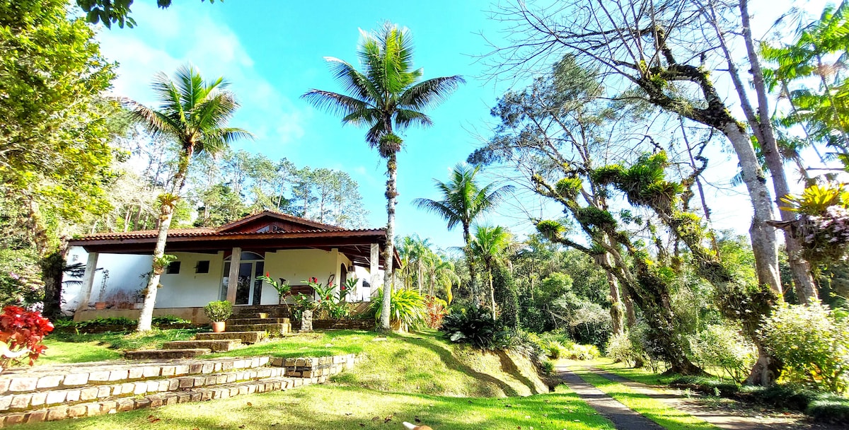 Um espaço lindo para estar com a família e os amigos junto à natureza, de fácil acesso, em meio ao verde, com comodidade, diversão e segurança. Ideal para retiros. Área externa com piscina, fogão à lenha, churrasqueira, mini campo de futebol, espaço para carros, horta, pomar, ar puro e despertar com o canto dos pássaros. 10 minutos da vila, 5 minutos à pé do rio, 15 minutos de carro para cachoeiras e 30 para praias. Medite, se renove, curta a natureza e relaxe neste lugar tranquilo e espaçoso.