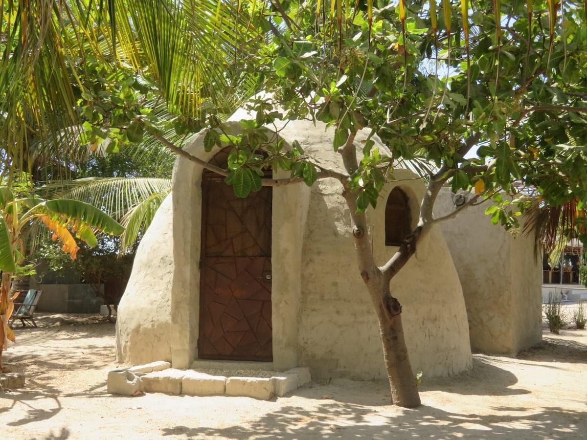 Case typique Sénégalaise entre Diakhanor et Djiffer, parc National du Saloum, dans un cadre atypique très agréable entre le fleuve Saloum et l'Océan Atlantique. Accès direct à la plage, électricité, eau chaude. Piscine à débordement, paillote, douche extérieur Endroit idéal pour vacances, repos, découverte du Delta du Saloum, des puits salants, de la mangrove, des îles et des villages de pêcheurs, ballade en bateau, pêche en surf casting ou en bateau avec guide.