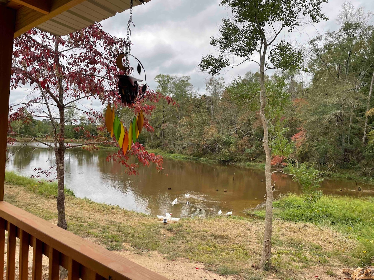 Take it easy at this unique and tranquil getaway. Less than a mile from Natchez Trace Parkway access, 300 yds through the woods. Bob's Bear Lair is a large rustic cabin overlooking a pond. Big porches and private setting. Enjoy a quiet getaway with Historic French Camp's local coffee shop and dining within a mile. Nestled among hardwoods this scenic spot is a hideaway from the bustle. Come experience it for yourself. Book your getaway today!