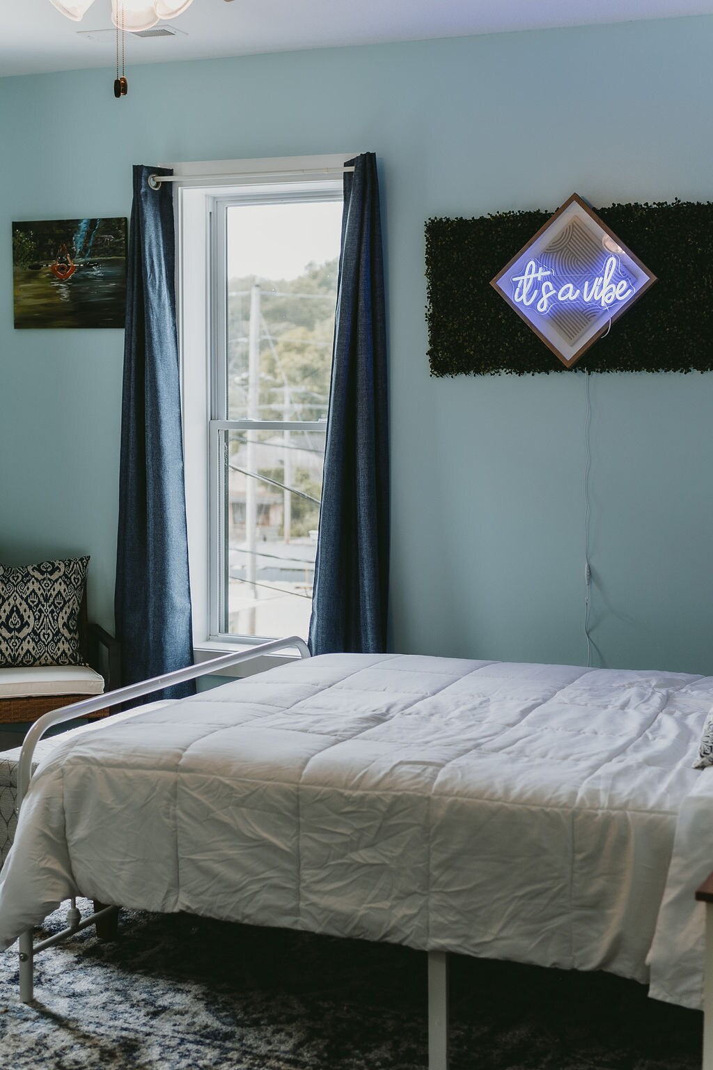 The River Room at The Heritage Hotel is close to everything, making it a great place to stay. We are walking distance to Current River, steps from restaurants, a downtown bar, art studio, museum, park, boutiques, thrift stores & more. Our 7 unit boutique hotel is overlooking Heritage Park and historic Downtown Doniphan. Room service available or make your own meals in our well stocked kitchen. During the Summer months enjoy live music in the park on select nights, just outside your windows!
