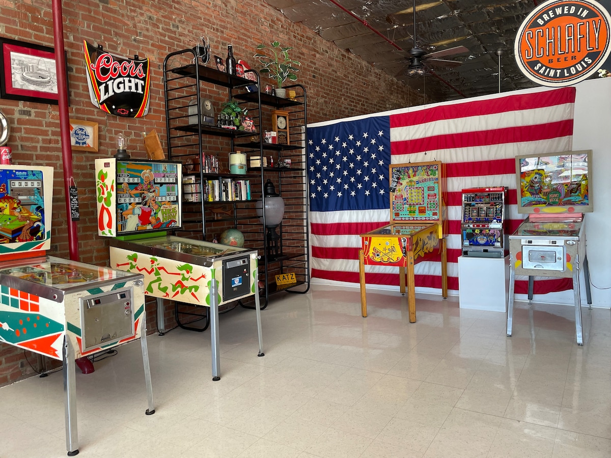 Truly one of a kind Historic property converted into a spacious, cozy loft in the heart of South KC. This 100-year-old space(5 min from HS Truman farm. He spoke on this stage on his first political campaign) has been completely rennovated with concrete countertops, beautifully vaulted ceilings, huge bathroom, built in workspace and even a fun kid's room. Let the natural light pour through the massive windows or close the curtains and dim the lights:) We hope you enjoy it as much as us!