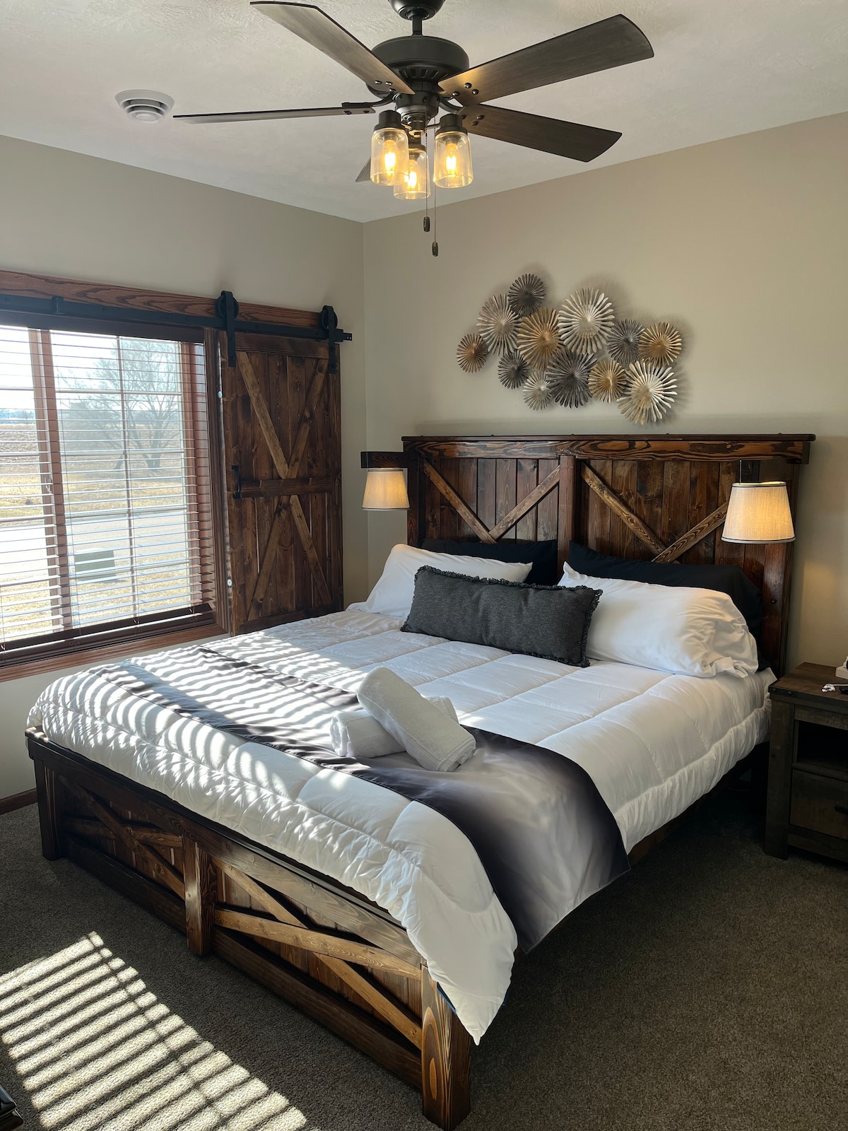 Welcome to your peaceful Southside retreat! This 1,488 sq ft ranch offers comfort and convenience with 2 king bedrooms, 2 baths, and a business suite with twin bed and Wi-Fi. Enjoy a cozy living room with 65” TV, fenced yard, deck, and 2-stall garage. Dogs welcome (max 2; see rules under "Other Details to Note"). Sleeps 5 max — 5th guest +$50/night. Ideal for families, professionals, and travelers seeking quiet relaxation near Sioux Falls attractions.