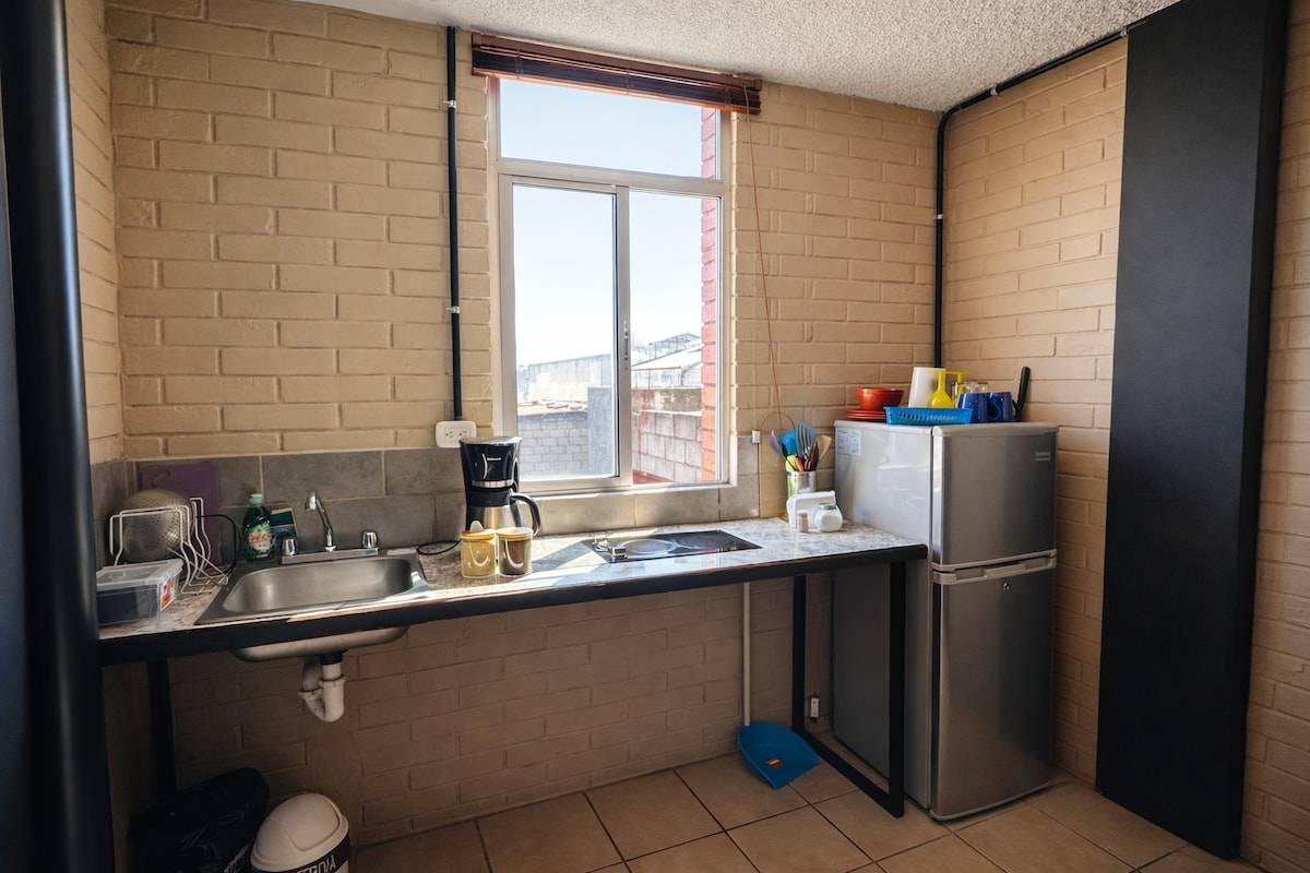 Cozy loft in a residential area with independent access, parking area for a sedan-type vehicle; sleeping area for three people (one double bed and one single bed); spacious living room, dining room and full kitchen, utensils and kitchenware; tableware; percolator for three cups, coffee filter supply. 300 meters from La Aurora International Airport, near car rental and retail areas. Natural lighting and ventilation.