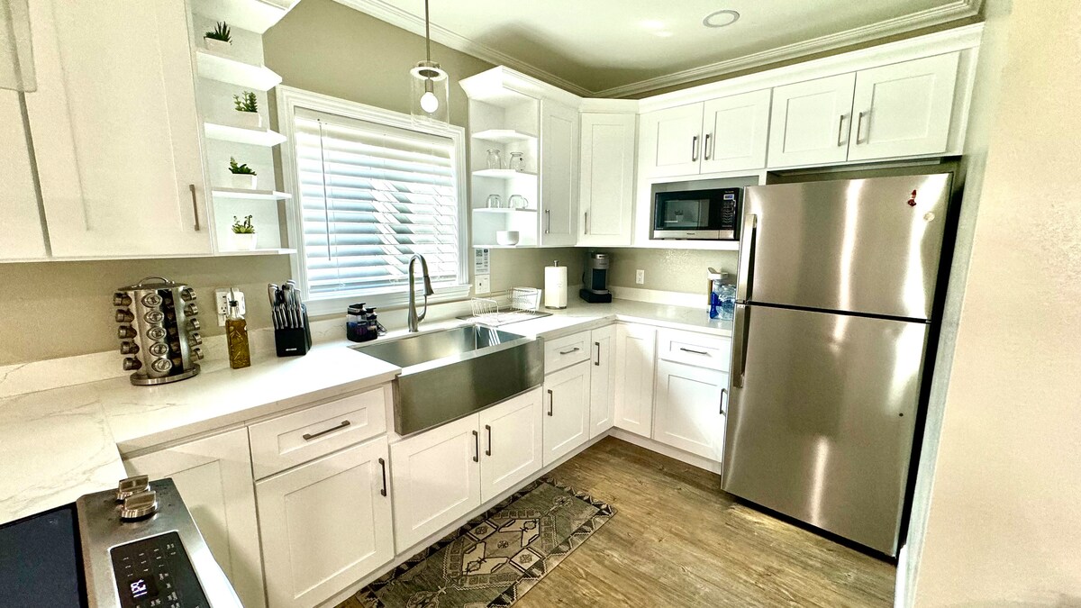 Welcome to our brand new 1-bedroom ADU guest house, a perfect retreat for your stay! This charming and modern space offers all the comforts of home and more. Living Space includes a cozy and comfortable queen bed, fully equipped kitchen, washer and dryer, full bathroom with a luxurious rain shower. Book now and experience the perfect blend of comfort and convenience!