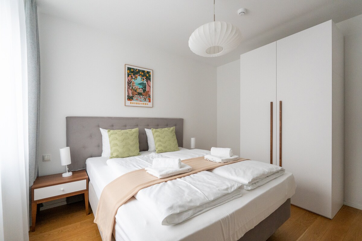 Welcome to our Urban 1BR Suite, located directly in front of the U1 metro station Altes Landgut. Stephansplatz and Vienna’s city center are just 10 minutes away by metro. Key Highlights: • Professionally managed property • Paid garage parking available on the premises • On-site amenities: luggage lockers, laundry room & lobby