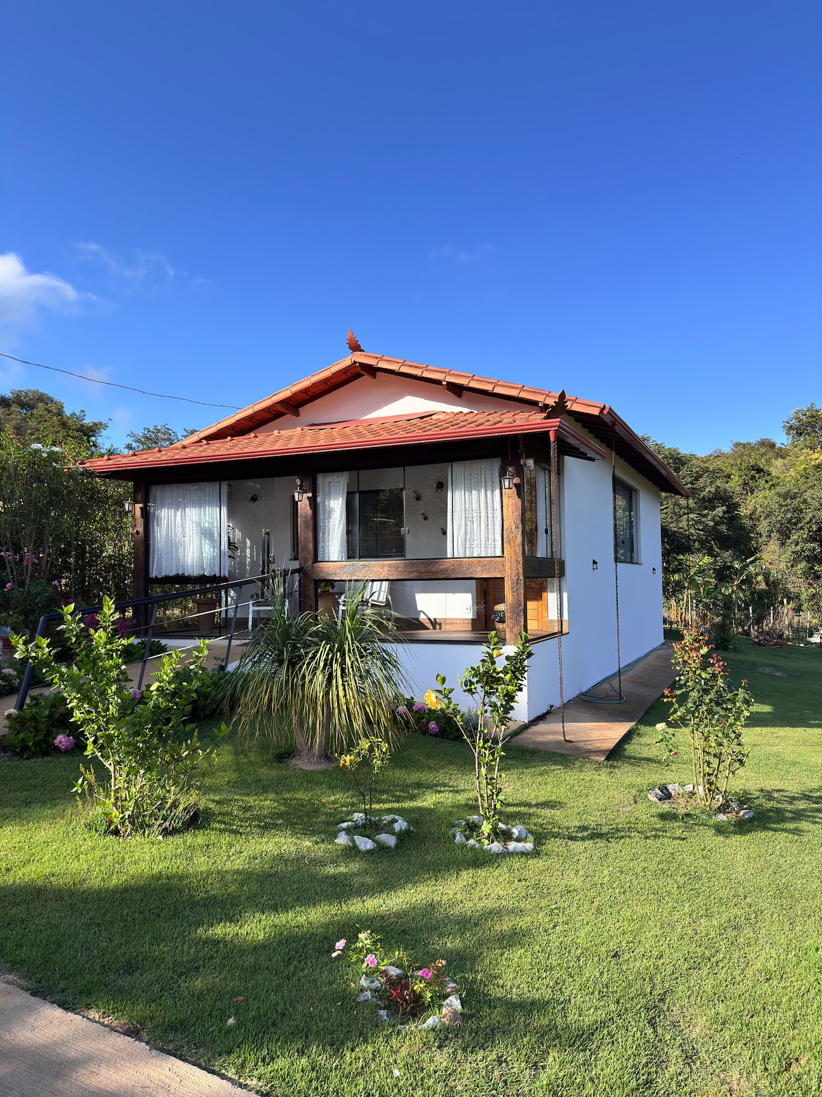 O Recanto Jamelão é um chalé aconchegante, a 50 km de BH, no pé da Serra da Moeda. Ideal para casais, é um espaço integrado com hidromassagem, cama king, cozinha completa, TV 55’’, ar condicionado e Wi-Fi (Starlink). Na área externa, fogueira, balanço, rede de balanço e churrasqueira estão à disposição. O chalé é exclusivo para sua hospedagem; estaremos presentes apenas no check-in para repassar a chave e instruções.