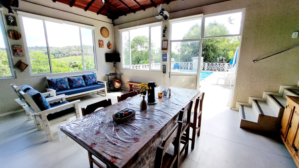 Exclusively for families! Just 50 minutes from SP, a retreat in the countryside to enjoy with your loved ones – whether it's cold or sunny: 🏊 Swimming pool with beach and waterfall 🔥 Covered gourmet area: pizza oven, wood-burning stove and barbecue 🎯 Pool, foosball, games and hammock to relax 🛏️ Accommodates up to 15 people (including children) 🐾 We accept up to 2 small pets 📶 Wi-Fi included ❌ Parties are not allowed 💸 Special discounts for weekdays!