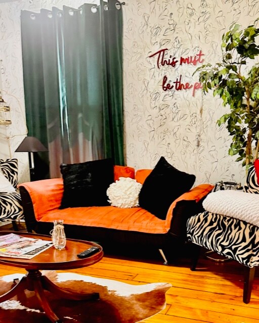 Step into a bold retro retreat in the heart of downtown Moline! Enjoy cozy fall nights by the firepit, play Pac-Man, or unwind in vibrant vintage style. ✨ What You’ll Love: • 🏙️ Prime Location – Walk to downtown, Vibrant Arena, restaurants & more • 🎮 Retro Vibe – Vintage decor + full-size Pac-Man machine • 🔒 Peaceful & Safe – Next to police station & city hall • 🔥 Outdoor Space – Private deck, fire pit, grill & Bluetooth lantern