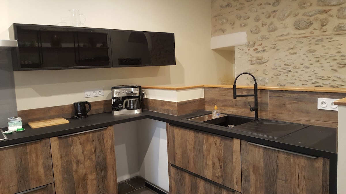 Take it easy at this unique and tranquil getaway. At the foot of Canigou in the town of Prades between sea and mountain. With views of Eus, close to all amenities. Studio description: * a kitchen equipped with fridge top, microwave, two-burner induction stove, Dolce Gusto coffee maker, a plancha…. * bedroom area with a 140 x 190 bed and TV * bathroom with shower * small dressing room * washing machine * private terrace * parking space * wifi