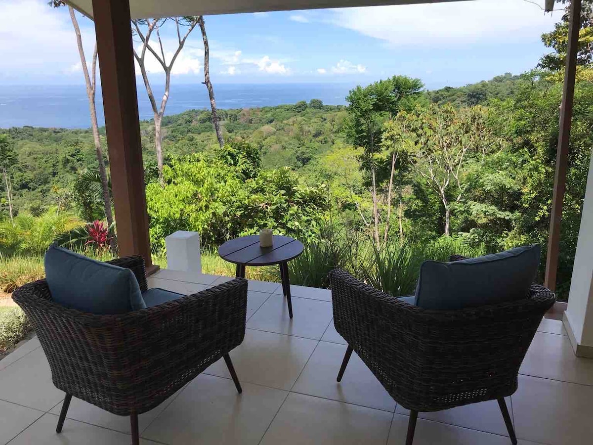 2bd 2ba modern home - on the mountain, in a rain forest overlooking the ocean! Located high above Uvita, you'll feel disconnected from it all, yet only 12min from downtown & FAST wifi! The 180° views will stop you in your tracks. And of course there’s a pool to cool off in while enjoying a timeless vacation on a 66 acre oasis in the clouds. So whether it be a coffee or tea, a glass of wine, a cold drink it will pair perfectly w/ a Costa Rican sunset. 25$ per extra guest per night