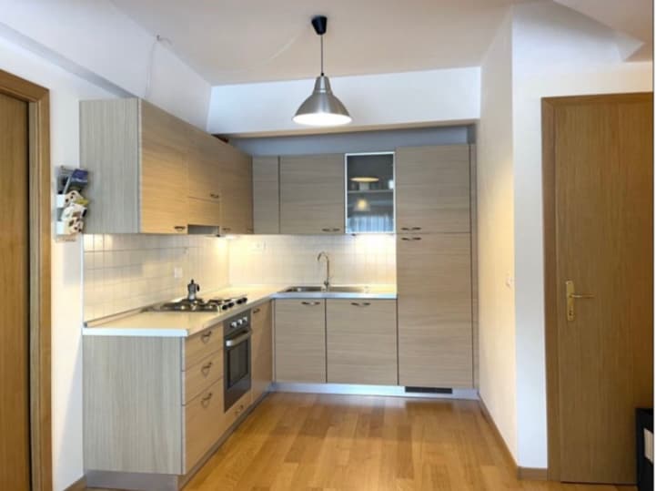 Two-room apartment with a double bedroom with balcony (view of the Brenta Dolomites), bathroom with shower and living area with two sofa beds (for kids or young people), kitchen and a wooden table. Available car parking in the private garden. The kitchen has all the necessary utensils, oven, fridge, freezer and cleaning utensils. Bed linen, sheets, blankets, pillows and hairdryers are also available in the apartment.