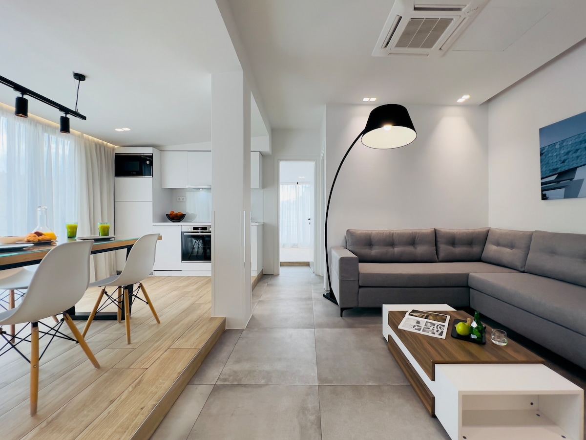 Elegant, modern apartment in Monastiraki, Athens' most central neighborhood. Located merely 300 meters from the Monastiraki subway station, our space offers brand-new hotel design with luxurious finishes. Ideal for a comfortable and memorable stay for a few days, weeks or even months, it beckons you to experience a stylish immersion into the very heart of Athens. Breathing new life into a mid-century textile manufacture, our building’s façade and overall architecture serves as a constant visual
