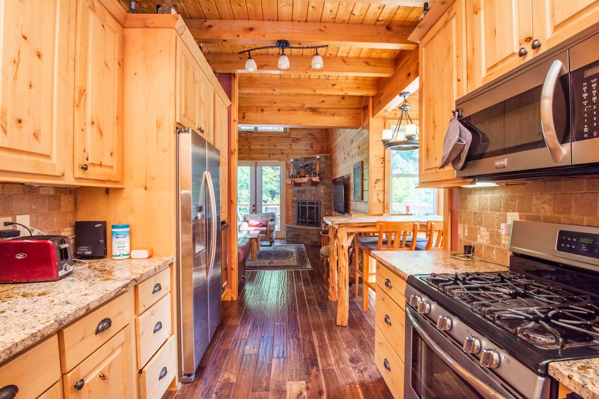 On the River! Kick back and relax in this calm, stylish space. This cabin has all of the extras and amenities that will make your stay fun and relaxing. Wi-fi, Wine Fridge, 65 inch TV, Fire Pit , Tile Shower with Rain Head, Romantic Fire Place, Large Undercover Deck, BBQ Grill and it sits 300 feet from the river. Yes you can see the river from the deck. You are 15 minutes from Tellico Plains, Madisonville, Cherohala Skyway and the Dragons Tail. 50 min from Knoxville Airport.