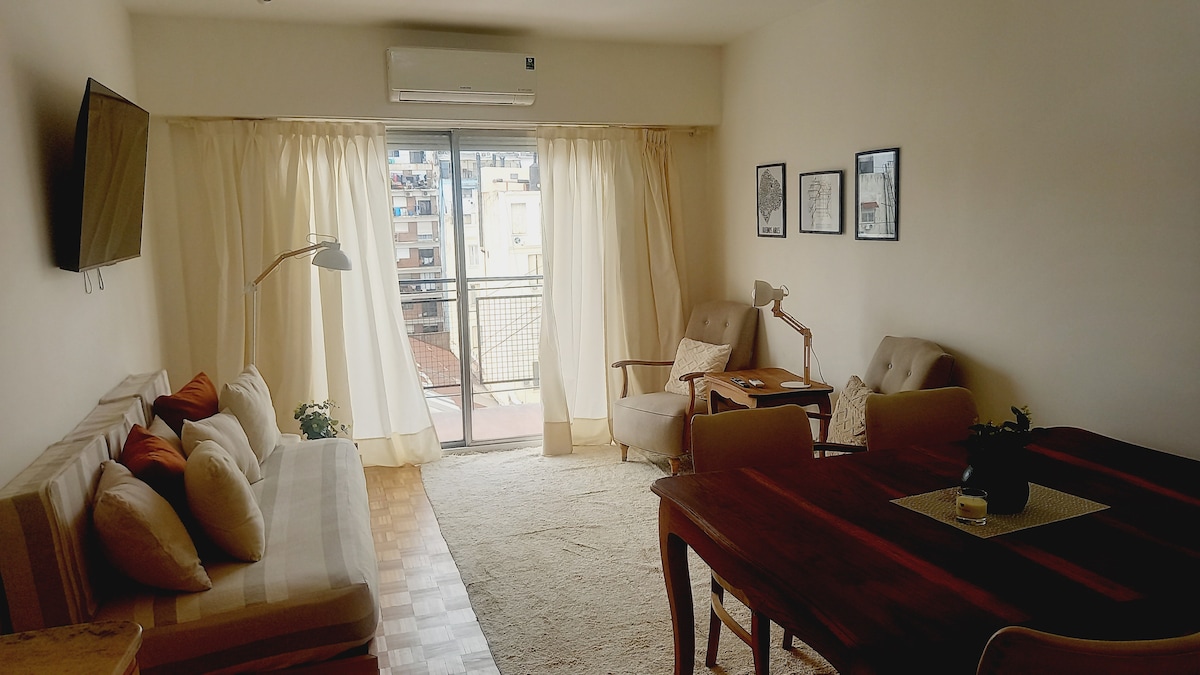 Forget your worries in this spacious and serene space. Bright and modern studio for 1-2 people. Located in Villa Crespo, very close to Palermo and Chacarita, a very quiet and residential area with bars, restaurants, an outlet area, supermarkets, and parks. With multiple means of transportation for the whole city (subway line B, Metrobus and bike lanes). Close to milongas, tango academies, and the Movistar Arena