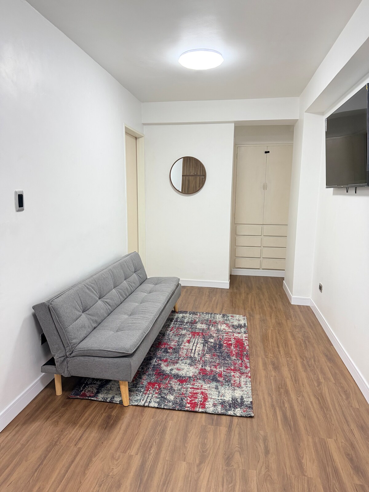 A cool, minimalist apartment to rest. El Paraíso near the Artigas subway, public transportation when you leave the building. Located on a 6th floor, operational elevators. It has Directv Signal, Netflix, WiFi, parking for your vehicle, always with water, two rooms with air conditioning. Multiplaza Paraíso shopping center, Pérez Carreño hospital at the end of Av San Martin and military hospital two blocks from the Artigas metro, all of these close to the building.