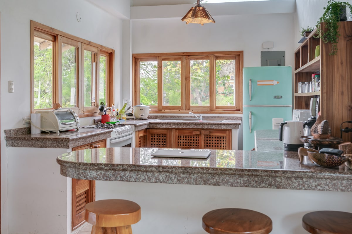 Peaceful house surrounded by nature, located on Dos Mangas road, just 10 minutes from the beach. A comfortable and quiet space, ideal for remote work, with stable Wi-Fi, air conditioning, and areas designed for focus and productivity without interruptions. After work, relax in the jacuzzi or enjoy nearby activities such as hiking, yoga, horseback riding, and wellness experiences in the area. ✔️ Reliable Wi-Fi ✔️ Quiet and peaceful environment ✔️ Private parking ✔️ Nature and comfort combined