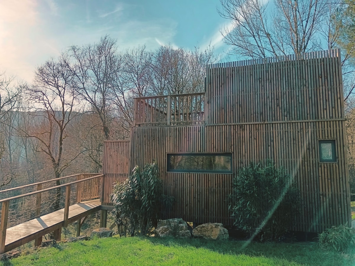 This unusual cabin offers you real comfort, with a beautiful wooden terrace overlooking the forest. A summer kitchen with barbecue, fridge and plancha available. The owners' swimming pool is available from June to the end of September and is private for guests from 10 a.m. to 5 p.m. Dogs are allowed under certain conditions, please contact us before confirming your reservations. Free parking is available on the property