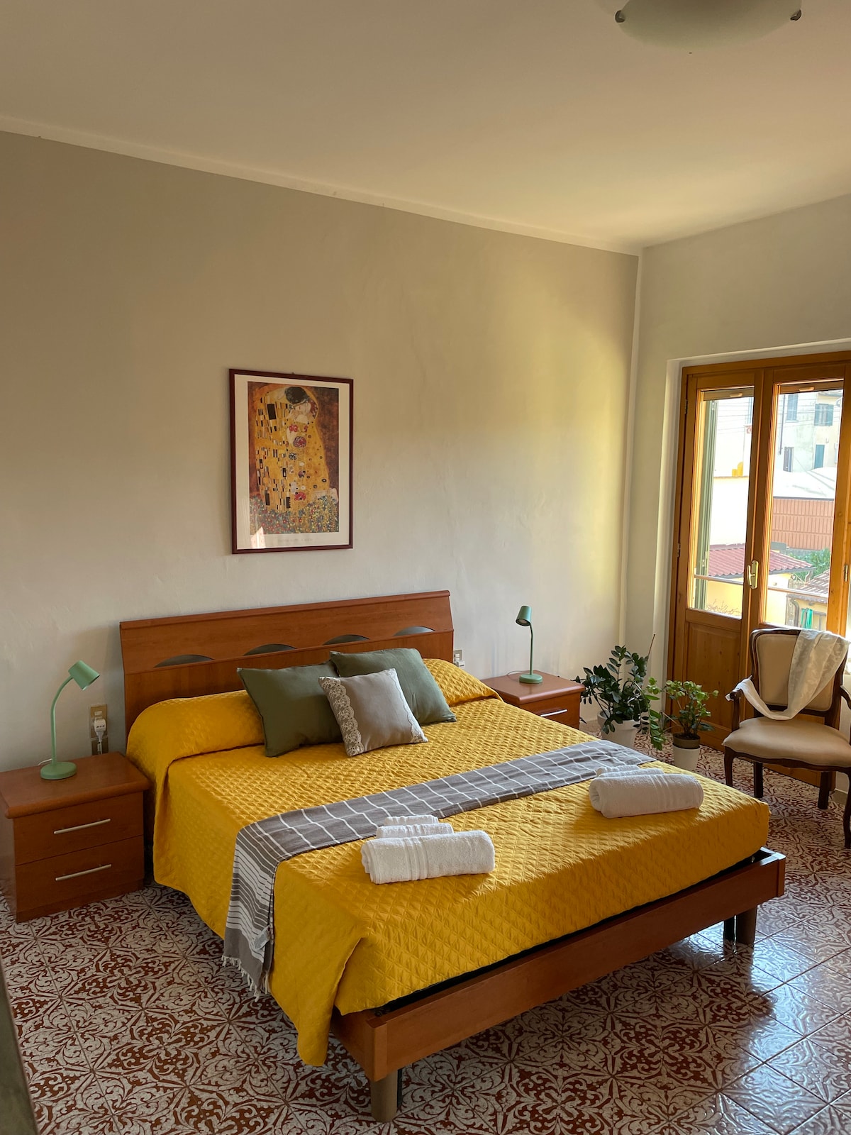 A modern 85 sqm apartment, just renovated, with a large double bedroom, another bedroom with two single beds, living room with sofa bed and 55'' TV, a spacious bathroom and a bright kitchen fully equipped. The balcony, directly connected with the kitchen, offers a nice view on the town of Montelupo. Rooms are decorated with particular paintings made by a local artist.