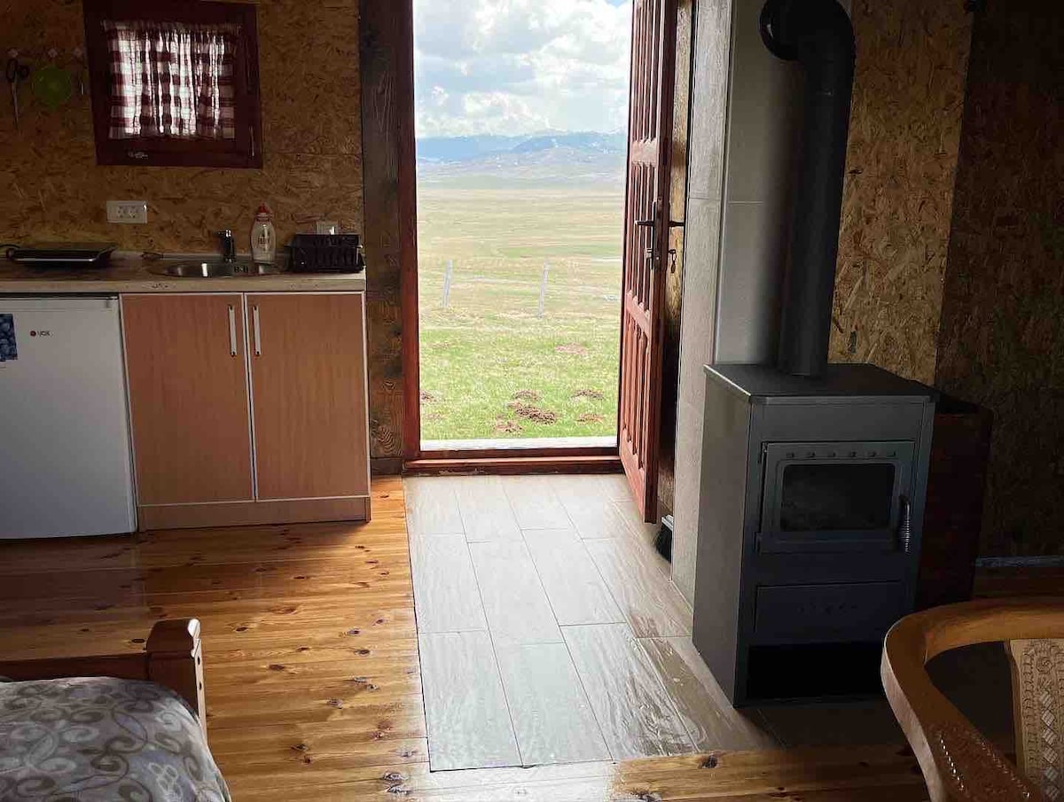 This wood cabin is standing on the top of our property. From this place you have the best view. At every side of the house you can see the mountains on there best. When you look at the pictures you can see that the two-personsbed is only available with a little stairs or you can sleep on the sofa bed downstairs. There is a place where you can make fire and make dinner on a bbq. at the terras we will serve breakfast every day from 1 mei till 1 oktober