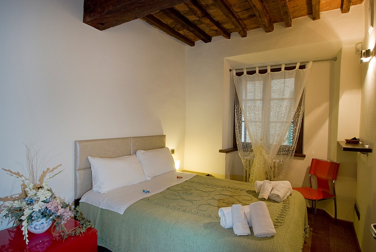 Plus standard room of about 18 sqm, built inside the historic part of the building, opens its windows to the historic village of Castiglione del Lago, and has the exclusive possibility of accessing the beautiful garden that laps the historic walls of the country, including a 1500 tower, all immersed in a breathtaking view of Lake Trasimeno and its hills.