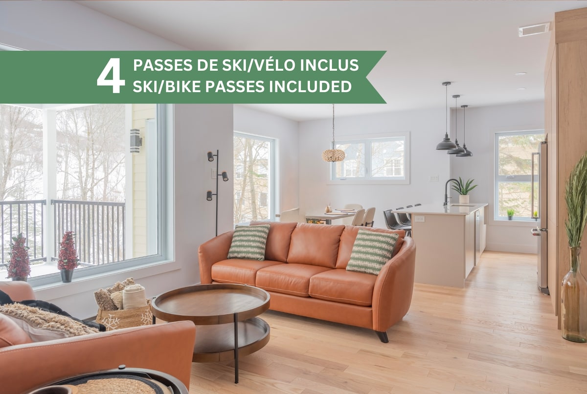 Le Chardonnay – Scandinavian-chic chalet with private spa in Chertsey. Experience the magic of a Québec winter between skiing at Montcalm, snowshoeing in the Forêt Ouareau, and dog-sledding adventures. Unwind in the outdoor spa beneath the snow, by the crackling fire, or in the warm, light-filled comfort of this modern chalet — perfect for families, friends, or remote work, less than one hour from Montréal. ❄️✨